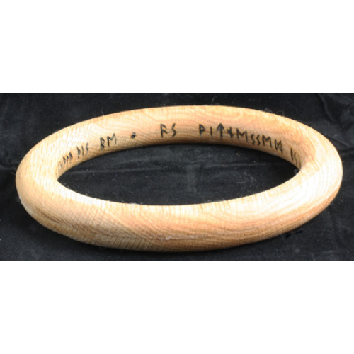 Handcrafted from solid oak, and pyrograved with runic inscriptions "as witnessed by the High Holy Ones of Asgard - so shall it be"